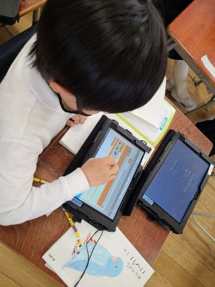 みんな「もっとやりたい」と発言がでるくらい積極的でした。授業の最後に、スクールライフノートを活用して、今日の授業の天気を記入し振り返りを行いました。