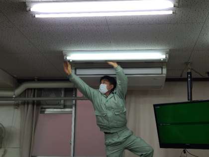 教室の蛍光灯を取り換えています。委員会で子どもたちがいない時間を活用して作業をしています。