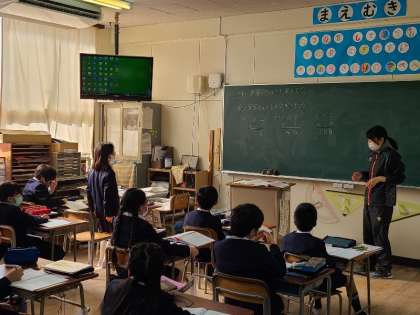 上:4年生の算数(習熟度別)の様子です。小数の筆算のしかたを考えていました。
