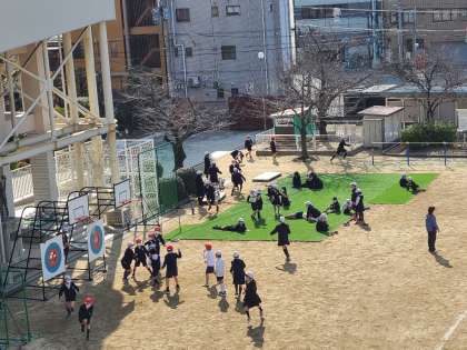 朝に比べて、すごしやすい陽気になりました。元気に運動場で遊んでいます。