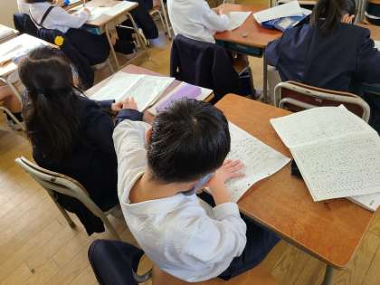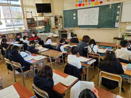 1年1組の国語の様子です。単元は「おはなしをかこう。」です。先生のマンゴーたろうのお話を参考にして、お話の始まりや内容を考えていました。「栗たろう」等、とても楽しそうなお話がたくさんできそうです。