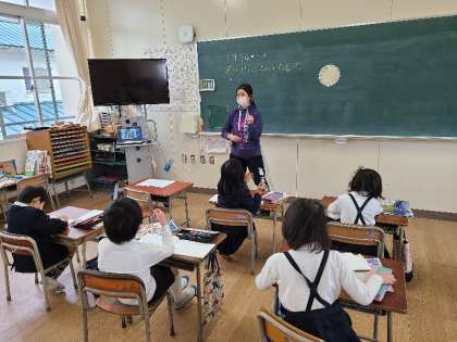 なかよしの算数の様子です。なかよしも、めあては「とけいのよみかたをしろう。」です。先生のお話を聞いてしっかりと考えることができていました。