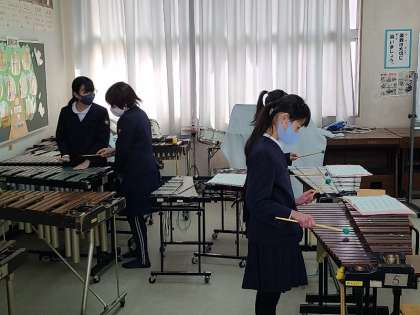 写真上:6年生は休み時間も合奏の練習を頑張っています。