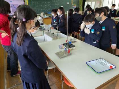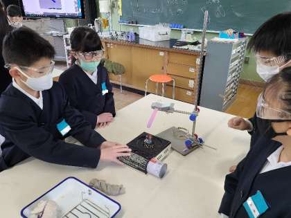 火を扱うので、試験管の向きや保護眼鏡の着用など、安全について何度も説明がありました。子どもたちも安全に実験をすることができていました。
