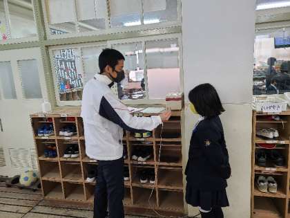5年2組の英語の様子です。スピーキングテストをしていました。天王寺中学校の英語科の白金先生に指導してもらっていました。中学校の英語の先生の英語力はネイティブと同じです。さすがです。