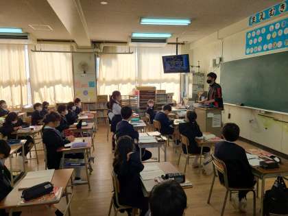 4年2組の社会の様子です。単元は「特色ある地域のくらし」で、ぶどう作りの盛んな柏原市について学習していました。