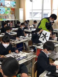 上段は、5年生の体育。マット運動の側方倒立回転や前転などの練習をしていました。