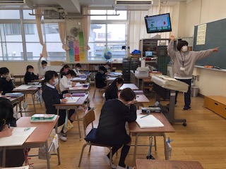上段は、2年生の国語。ようすを表すことばをたくさん集めていました。