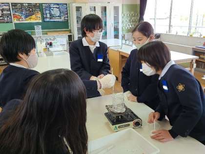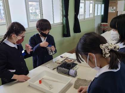 5年1組の理科の様子です。問題は「水の温度を上げると水にとけるものの量はどうなるのだろうか。」です。各班で話し合いながら実験準備をしていました。