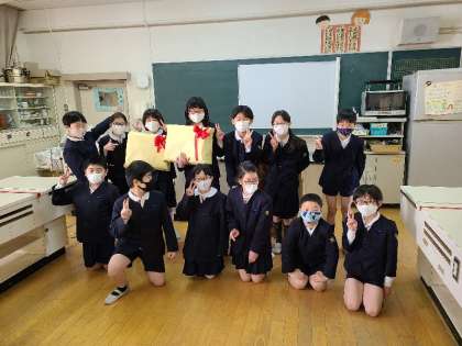 卒業生から「お礼の言葉」の後、各クラスに卒業生の合奏のプレゼントがありました。曲目は、1組が「糸」、2組が「情熱大陸」です。オンラインによる卒業を祝う会は初めての試みでしたが、全員が感謝の気持ちで過ごすことができました。