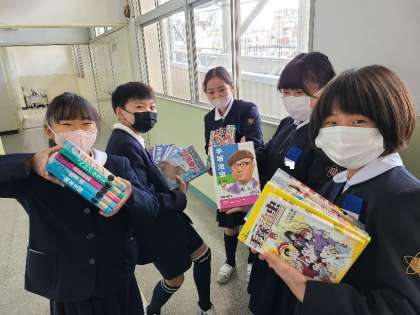 図書室の本を教室に運んでいました。「伝記で勉強する。」と笑顔で教えてくれました。