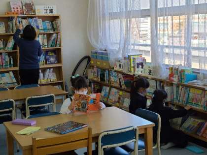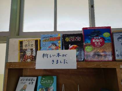 今日は図書館司書の羽山先生に来ていただいています。新しい本も置いています。みなさん、図書館で本を読みましょう。