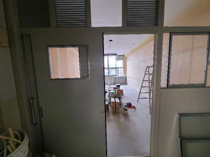 図工室の一部を特別支援教室にする改修工事が進んでいます。教室の扉がつきました。