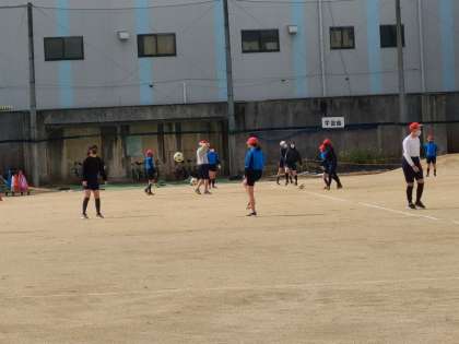 6年1組の体育の様子です。太陽も出てきて運動場も使用可能となりました。ボール運動の様子です。