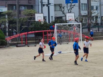 3年1組の体育の様子です。体育の準備運動は固定遊具を活用したサーキット運動です。