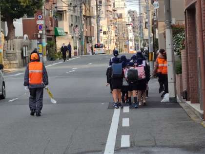 見守り隊、保護者の皆さん、学園の先生方に見守られ登校しています。いつもありがとうございます。