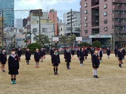 1年生が新入生歓迎の練習をしています。4月からお兄さんお姉さんになります。新1年生が困っていれば、いっぱい助けてあげてください。