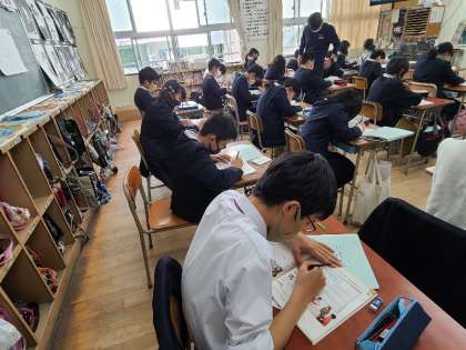 6年2組の英語の様子です。「 My Best Memory 」をテーマにワークシートに書き込んでいました。もちろん英語です。