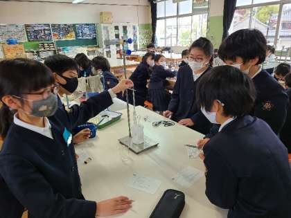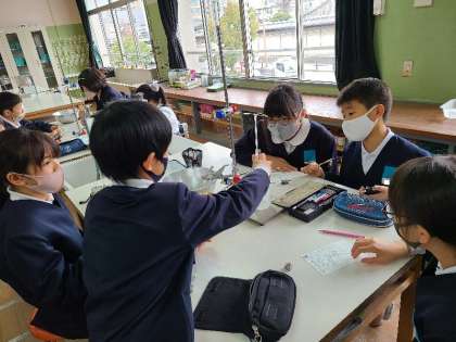 4年1組の理科の実験の様子です。単元は「水のすがた」です。水を冷やした時の変化を学習します。「先生、水が氷ました。」とうれしそうに教えてくれました。氷と食塩で冷やした水が氷に変わり感動していました。