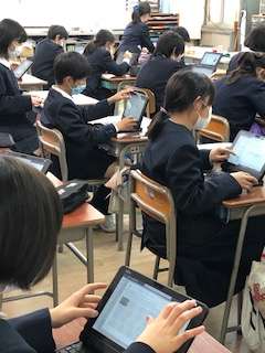 上段は5年生の総合。新しいタブレットの使い方のきまりを自分たちでつくっていました。