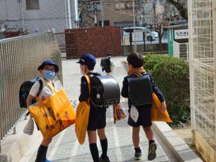 作品袋に今年の作品をいっぱい入れて下校しています。明日も元気に登校しましょう。