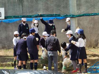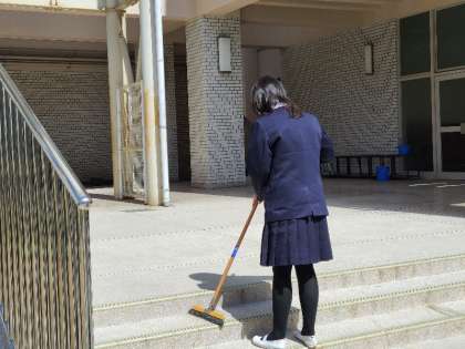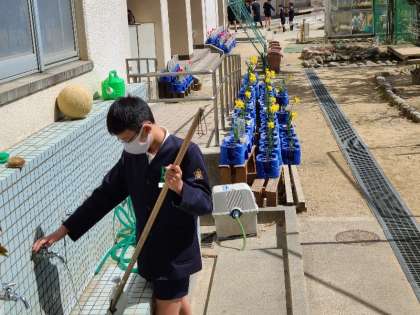 4時間目、6年生が地下道や廊下、学習園などを掃除してくれました。「立つ鳥跡を濁さず」の気持ちで、後輩たちにもきれいに学校を使ってもらおうと頑張りました。