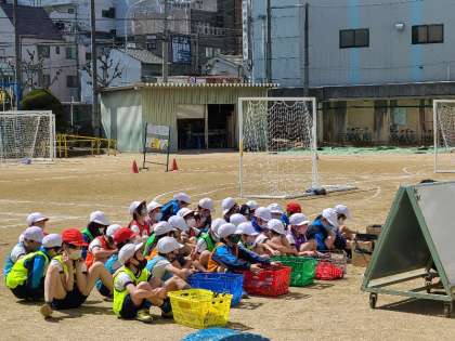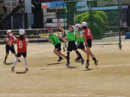 3年2組の体育のボールゲームの様子です。先生から、しっかりと作戦を考えようと指示がありました。声をだしたり、人のいないところに動いてボールをもらったりと頑張っていました。