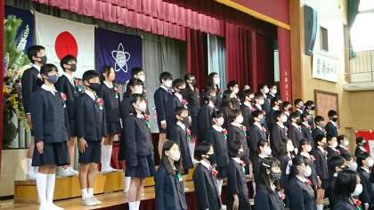 卒業のことばでは、6年間を振り返り、今までの頑張りと、教職員・地域・保護者の皆さん・学園の先生方に感謝の言葉と、旅立ちの決意をしっかりと発表することができました。