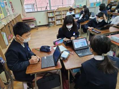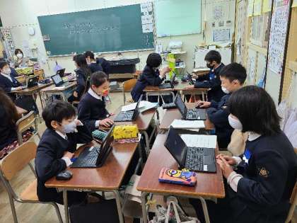 5年2組の様子です。タブレットの活用のルール作りに取り組んでいました。