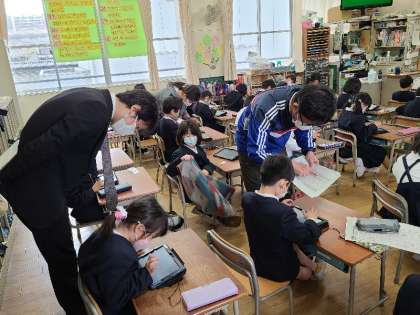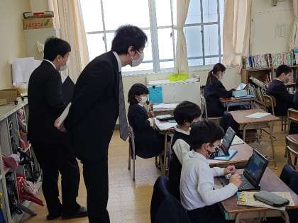 本日、金沢市教育委員会の方が、本校のICTの活用等を視察にこられました。