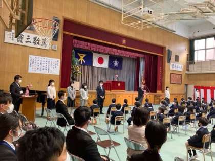 本日、令和3年度天王寺小学校の入学式を行いました。ワクワクドキドキの1年生ですが、校長先生や6年生代表のお祝いのことば等、お話を聞く態度がとても立派でした。