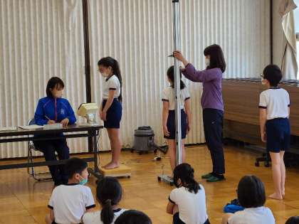 5年1組の発育測定の様子です。測定が終わった後に、先生にしっかりとお礼を言っていました。素晴らしいですね。