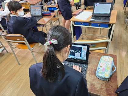 高学年の朝の様子です。4年生はデジタルアプリでタッチタイピングの練習をしていました。6年生もデジタルドリルに取り組んでいました。