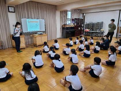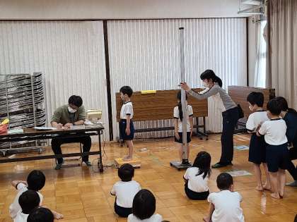 1年生が発育測定を行いました。保健室の利用の仕方等をクイズ形式で学習しました。その後、身長と体重を測定しました。
