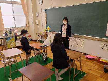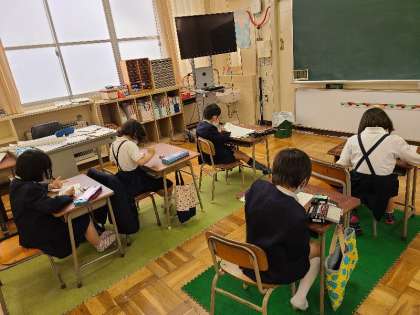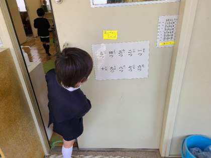 なかよしの授業の様子です。教室に入る時は、「ひとつ、ふたつ、みっつ」というように大和言葉の数え方を言ってから入ります。