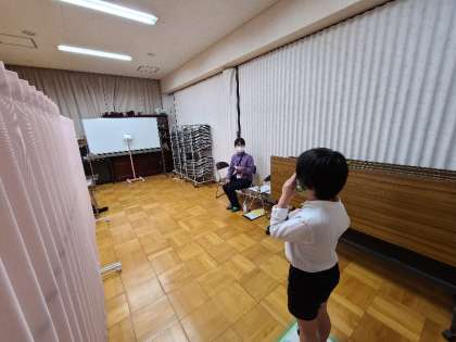 視力検査の様子です。年度当初は保健関係の検査や検診が多くあります。自分のからだのことをしっかりと確認して健康な生活を送りましょう。
