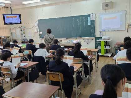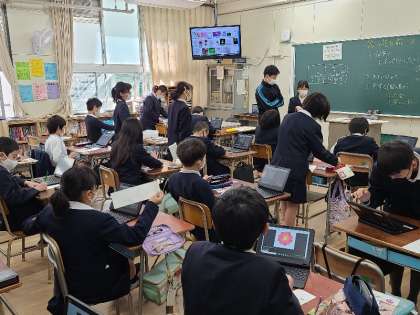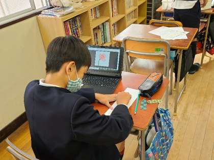 国語ではデジタル教科書を活用して、物語をしっかりと読み込んでいました。図工はタブレットで検索した一輪の花を描いていました。
