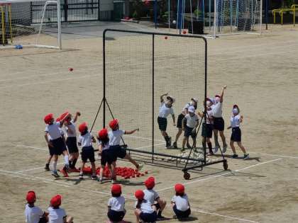 3年2組の体育の投の運動の様子です。体をいっぱいに使って、玉を投げていました。