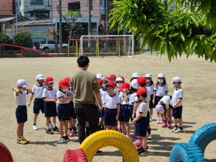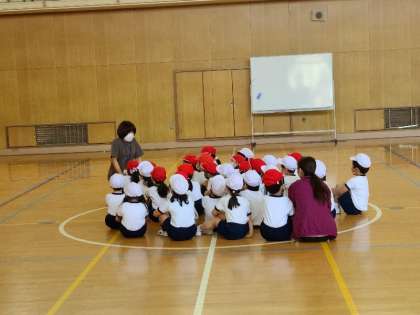 1年1組と3組の体育の様子です。どちらのクラスも、運動場や体育館で行う授業のルールについて丁寧に説明されていました。先生の方にからだを向けてお話を聞くことや、先生がお話している時は手遊びをしないなど、しっかりとルールを守って楽しく学習しましょう。