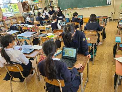 3年生の教室では、タブレットドリルで学習する子どもたちもいました。