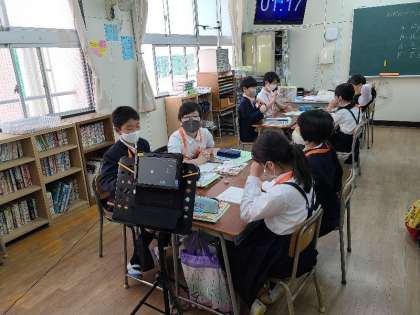 また、休んでいるお友だちと「Teams」で一緒に学習していました。