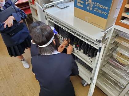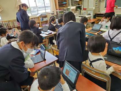 6年1組が、2年生にタブレット等の使い方について指導してくれました。昨年度からタブレット等の扱い方等の作成に取り組んでいました。今日はその授業の一環です。6年生らしい素晴らしい取り組みです。6年生の皆さん、ありがとう。