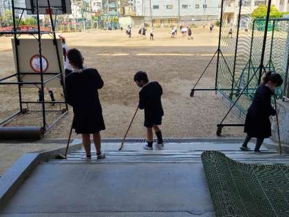 美化委員の児童が清掃活動をしてくれています。