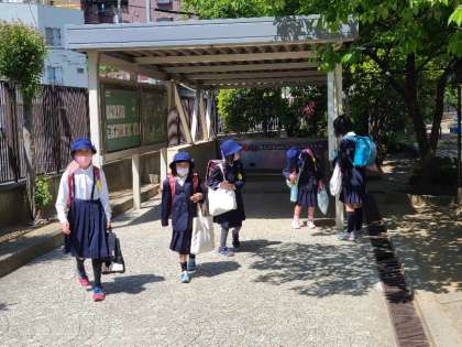登校は誘い合い登校です。また、お知らせした登校時間に登校するようにご協力をお願いします。