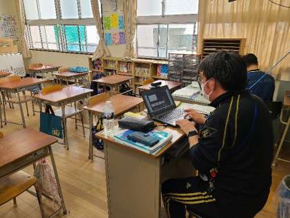 写真上は昨日の授業の様子です。6年生の理科の様子です。