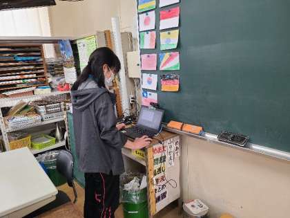 5時間目、Teamsを活用して、5月6日の準備を伝えたり、音楽の学習等をしています。