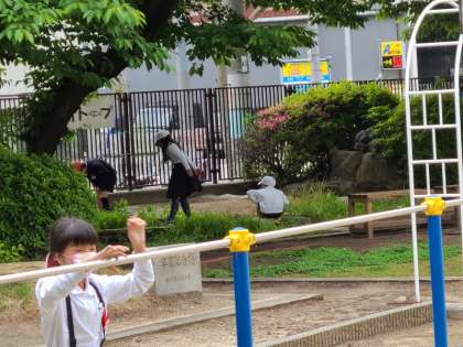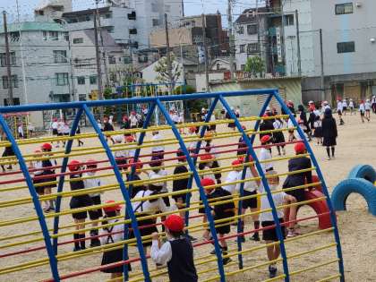 運動場の様子です。気持ちいいくらい元気です。笑顔も素敵です。