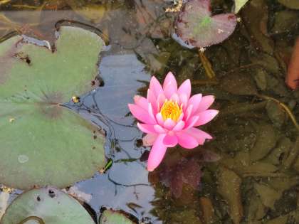 ザリガニ池の睡蓮です。前回は白い睡蓮したが、今回はピンクの睡蓮です。