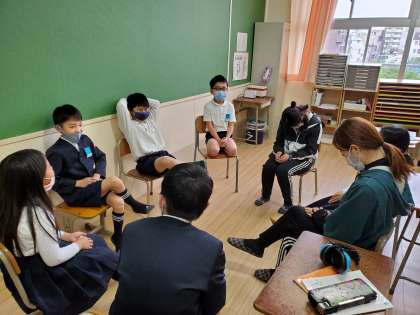 写真下:「なかよしタイム」にみんなでゲームをしていました。