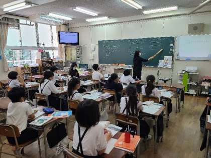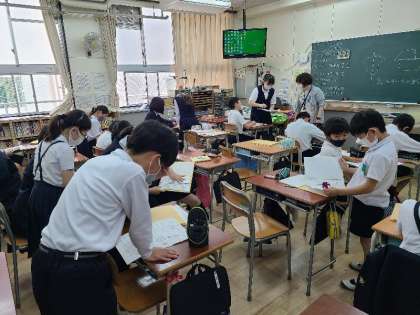 6年1組は互いに教え合いをしていました。